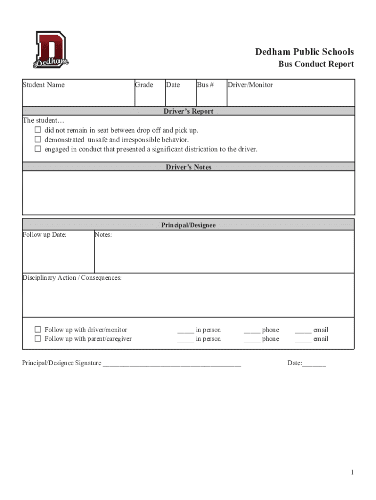 A well-structured bus conduct report form includes several key sections that ensure thorough documentation of each incident. Understanding these components is vital for anyone responsible for filling out these forms.