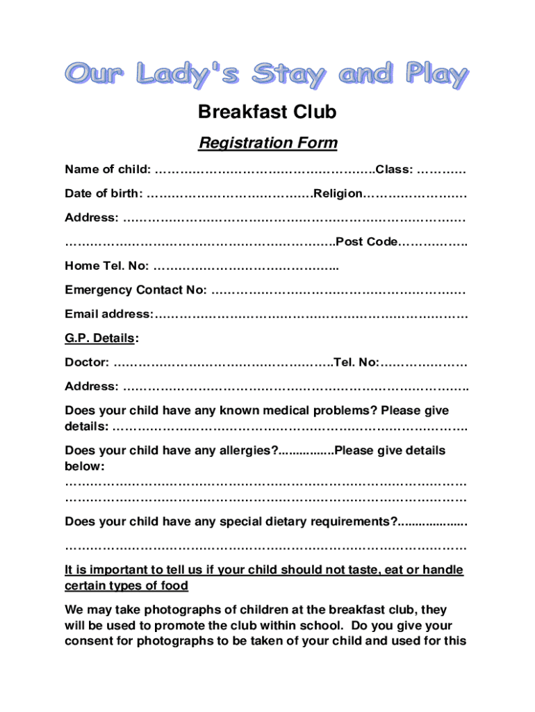 How to fill out breakfast club registration form?