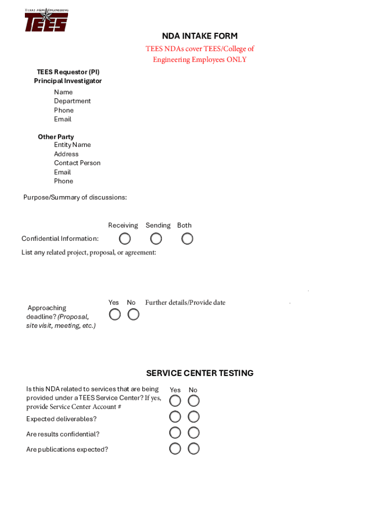Get the free Nda Intake Form - tees tamu