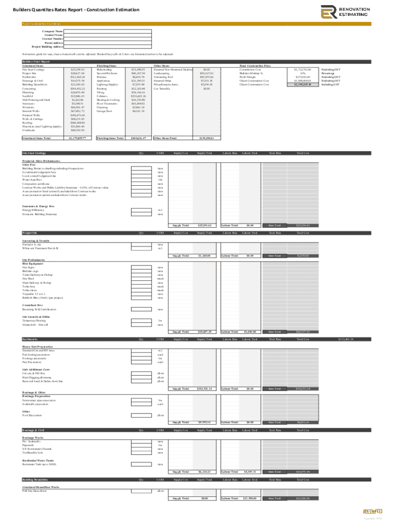Get the free Builders Quantites Rates Report - Construction Estimation