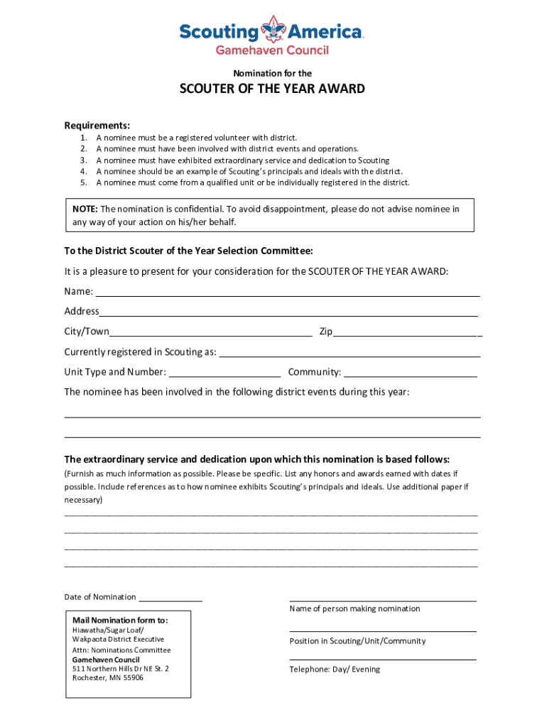 Get the free Nomination for the Scouter of the Year Award