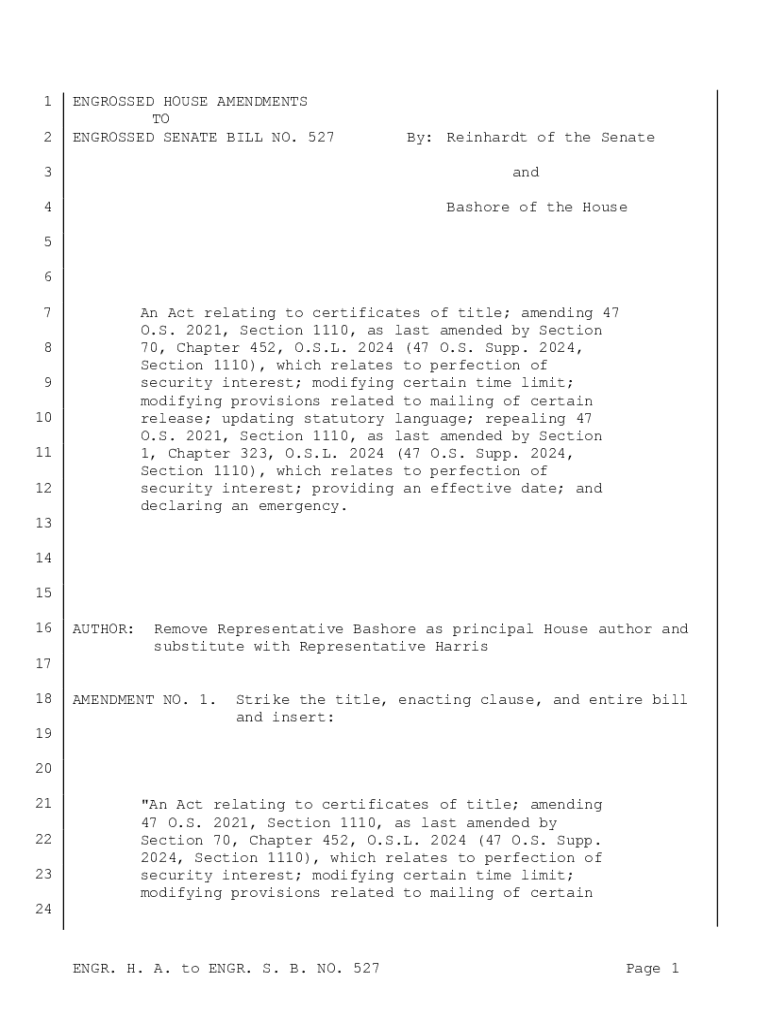 Get the free Engrossed House Amendments to Engrossed Senate Bill No. 527