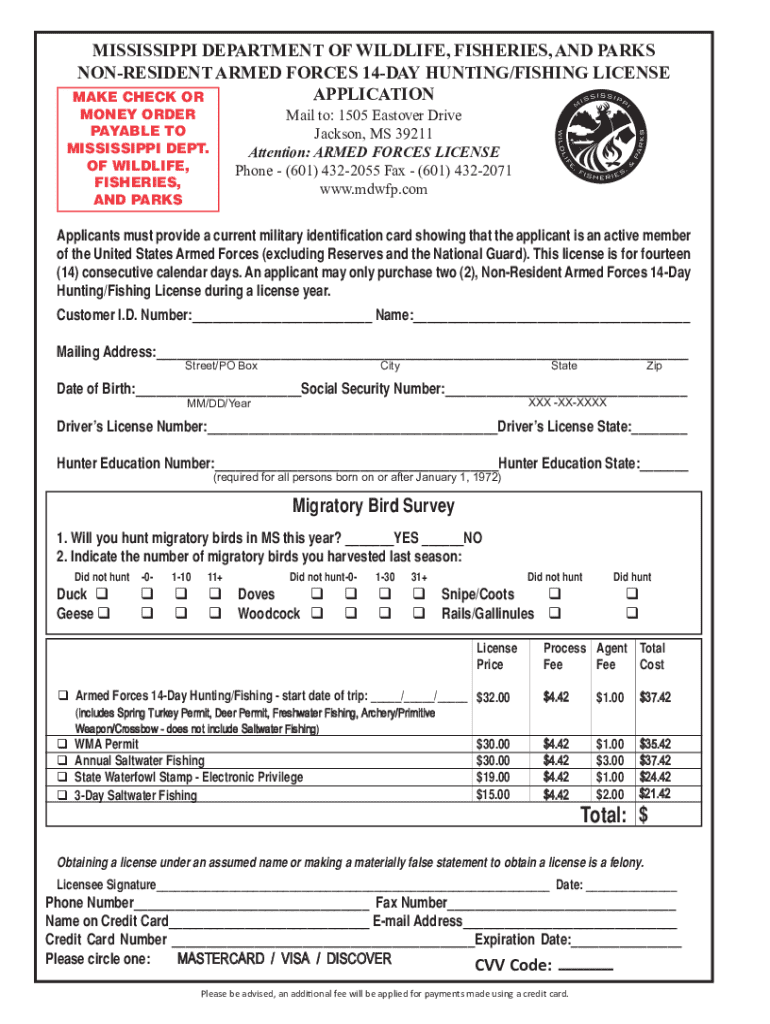 Get the free Non-resident Armed Forces 14-day Hunting/fishing License Application
