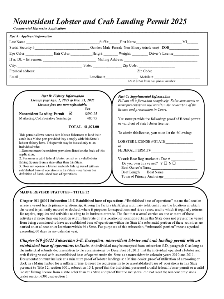 Get the free Nonresident Lobster and Crab Landing Permit 2025