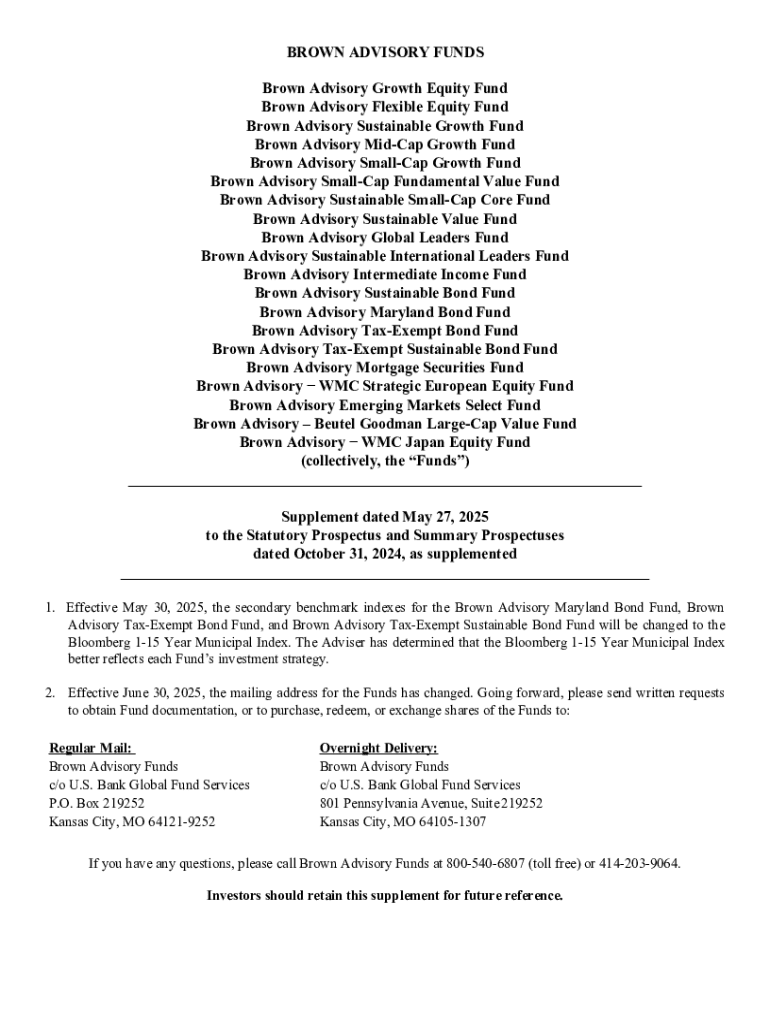 Get the free Brown Advisory Tax-exempt Sustainable Bond Fund Summary Prospectus