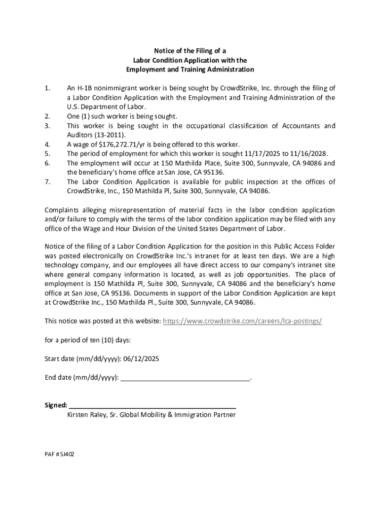 Get the free Notice of the Filing of a Labor Condition Application