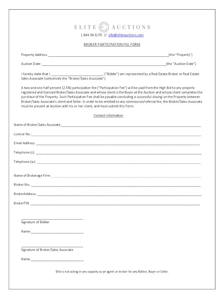 The importance of the broker participation fee form cannot be overstated. It establishes accountability and transparency in real estate transactions, which helps to mitigate disputes and misunderstandings. For both brokers and clients, having this form completed accurately can lead to more efficient transactions and foster a better working relationship.