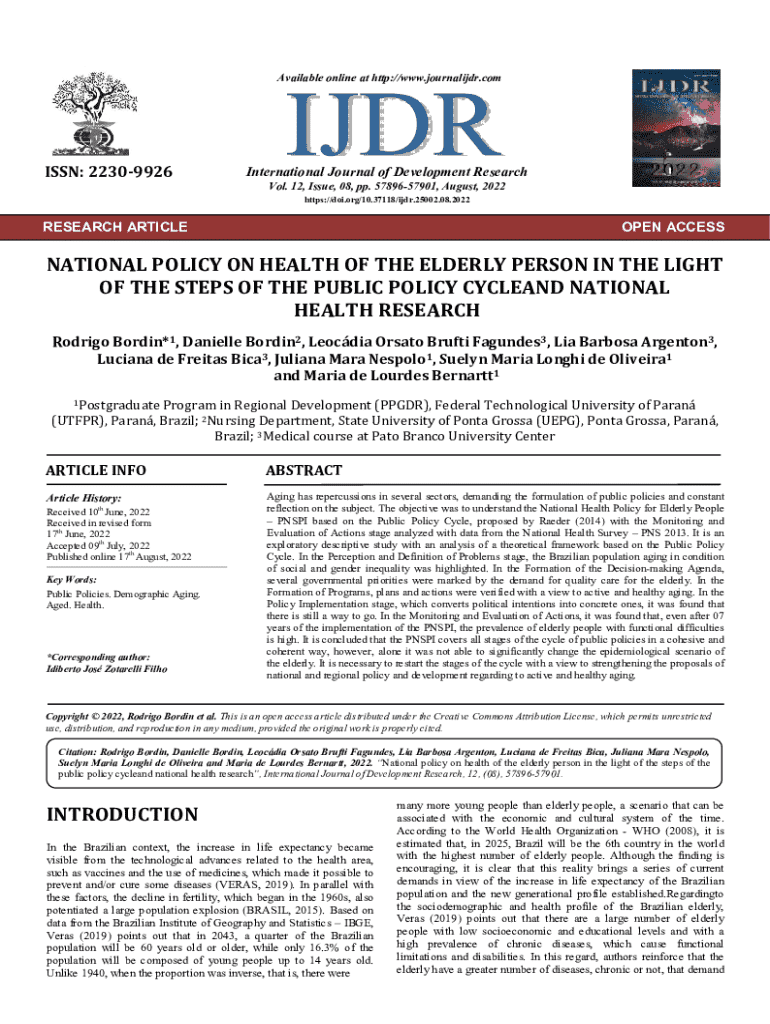 Get the free National Policy on Health of the Elderly Person in the Light of the Steps of the Pub...