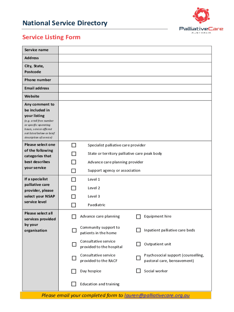 National Service Directory is not the form you're looking for?Search for another form here.