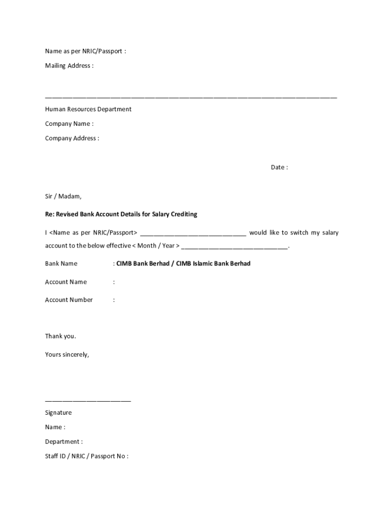 Get the free Application Form For Change In Salary Crediting Account