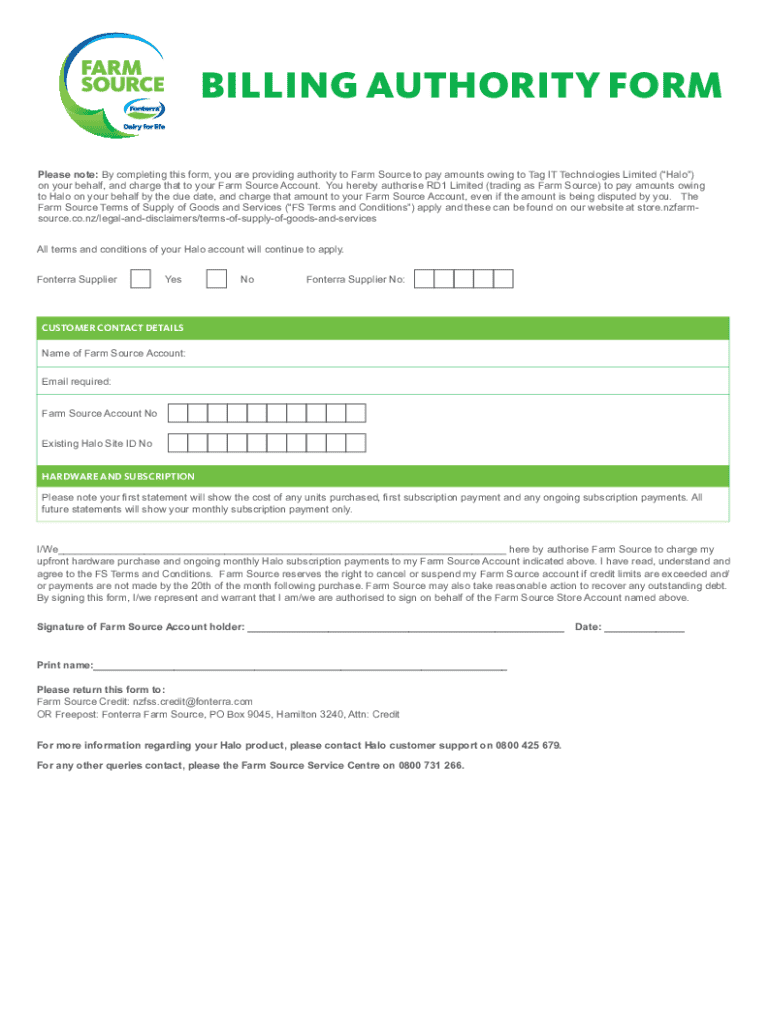 Get the free Billing Authority Form