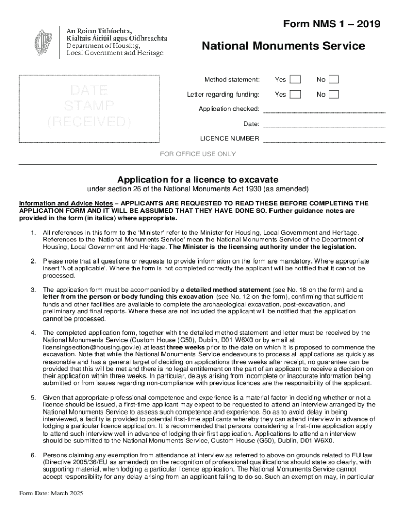 The NMS 1 2019 Form contains several important sections that capture various aspects of information relevant to its intended purpose. Key features include personal identification sections, compliance checklists, and fields for detailed descriptions based on the type of submission.