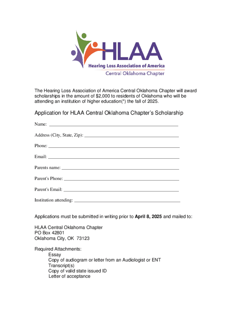 Get the free Hlaa Central Oklahoma Chapter Scholarship Application
