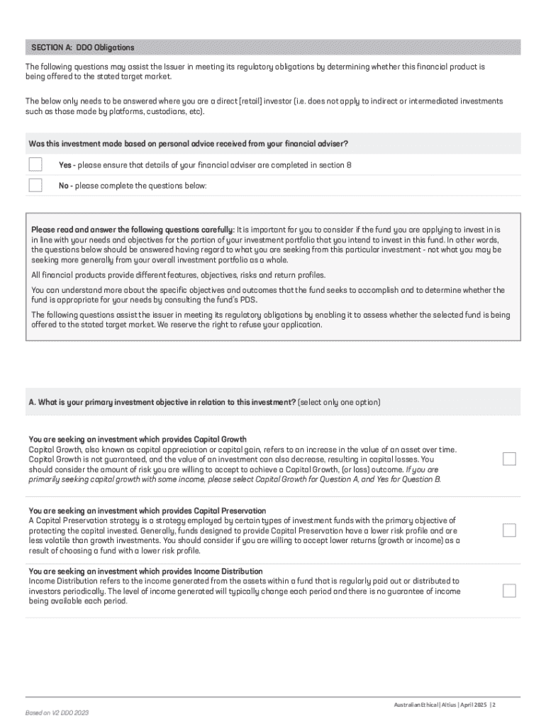 This document is an application form for individuals or sole traders to invest on their own behalf in managed funds offered by Australian Ethical Investment Ltd.