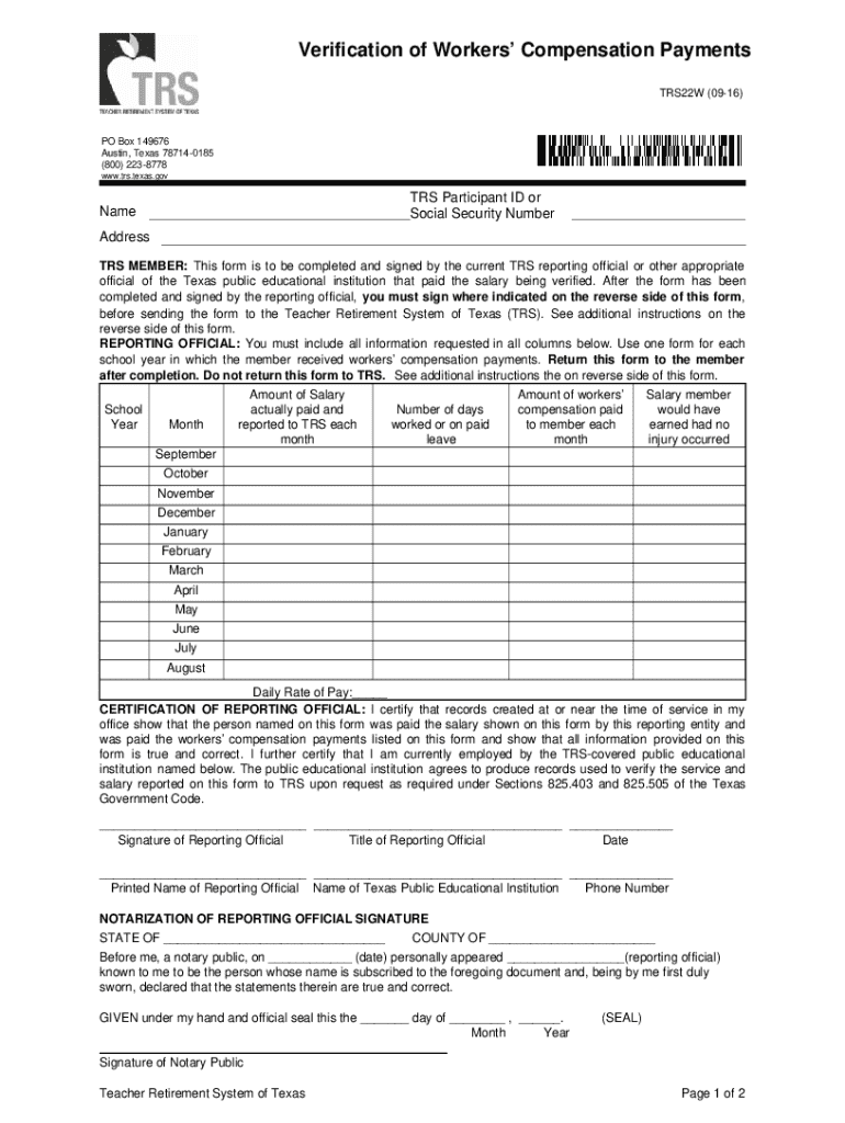 Get the free Verification of Workers’ Compensation Payments