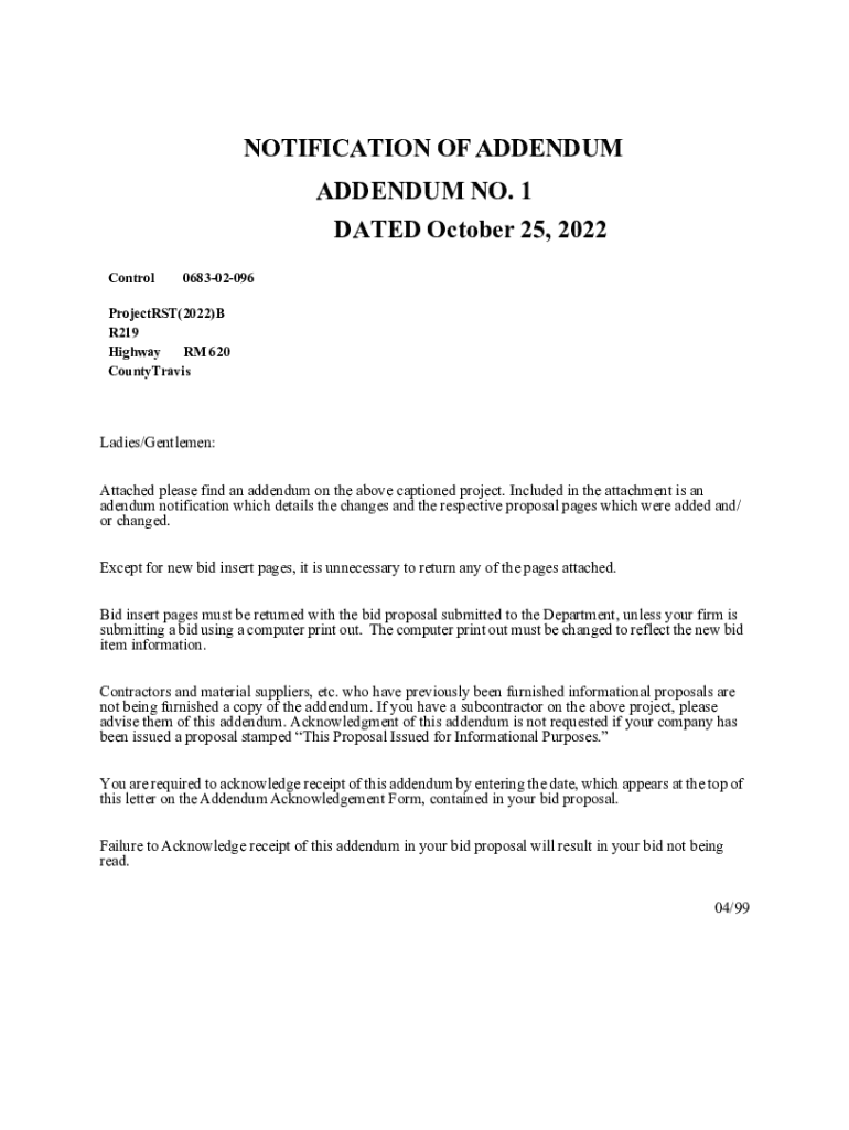 Get the free Notification of Addendum - ftp txdot