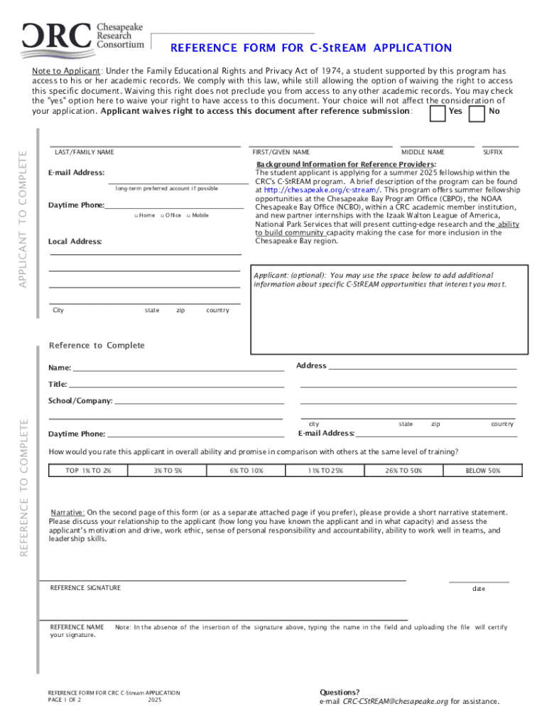Get the free Reference Form for C-stream Application