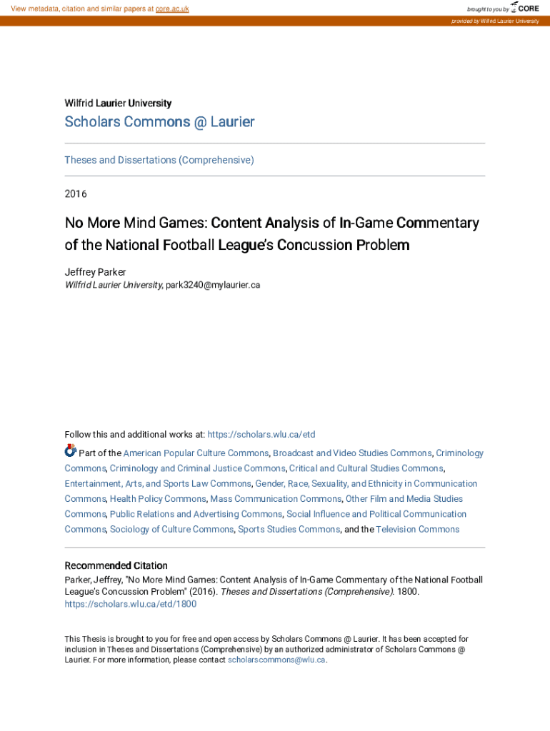 Get the free No More Mind Games: Content Analysis of in-game Commentary of the National Football ...