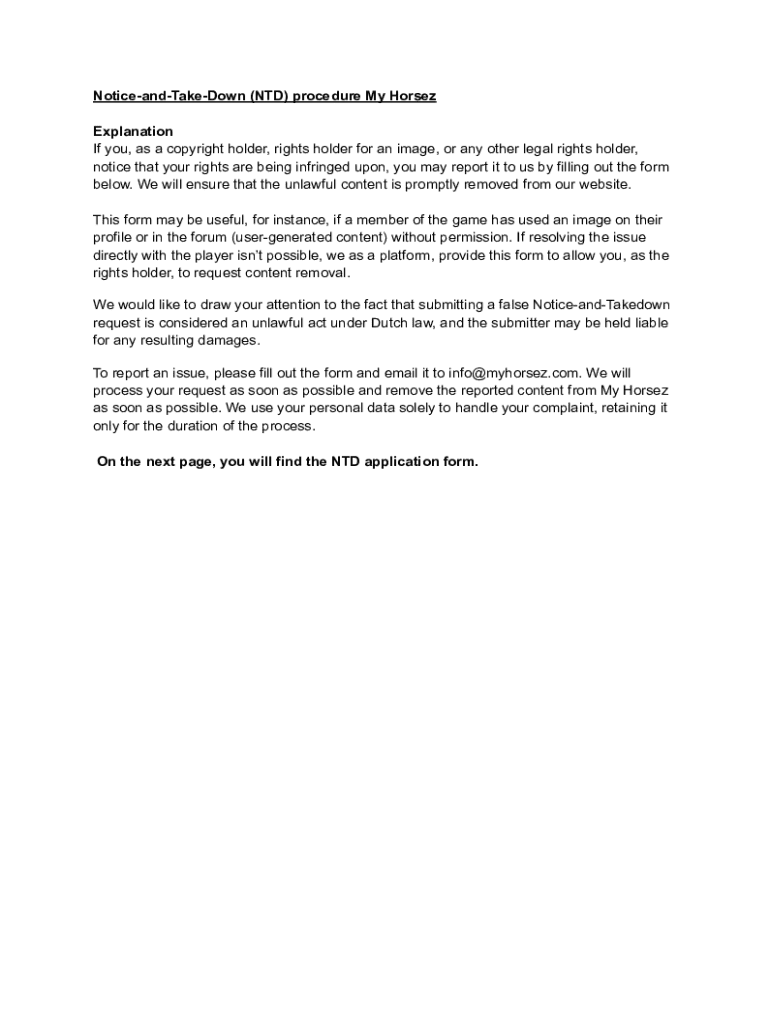 Get the free Notice-and-take-down (ntd) Procedure My Horsez