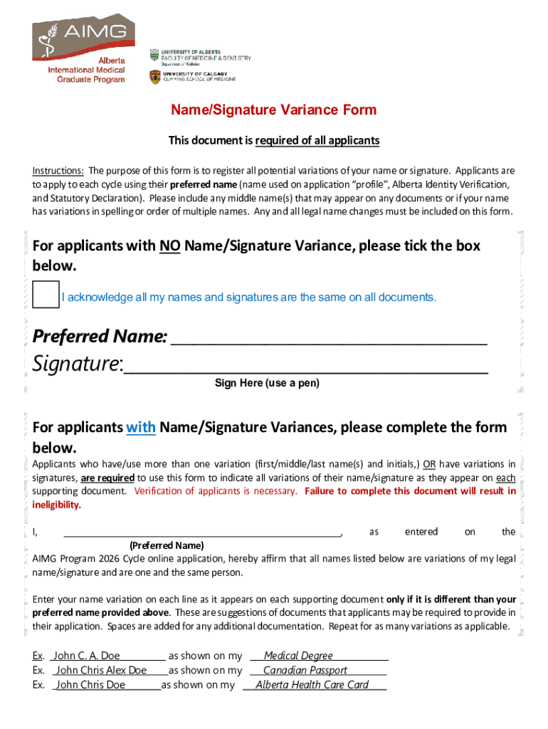 Before you begin filling out the Name Signature Variance Form, it is critical to gather all necessary information and documentation. Starting with proof of identity, individuals may need to provide a copy of their driver's license, passport, or other government-issued ID. If you are undergoing a legal name change, appropriate documentation must be included, such as court orders or marriage certificates.