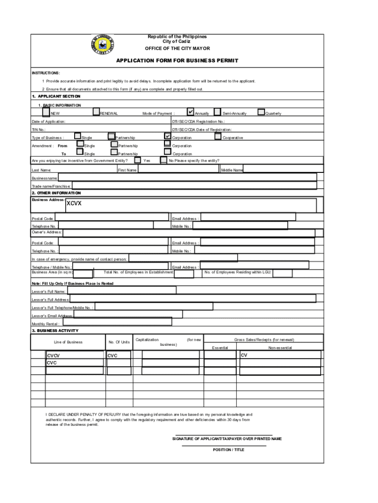 Get the free Application Form for Business Permit