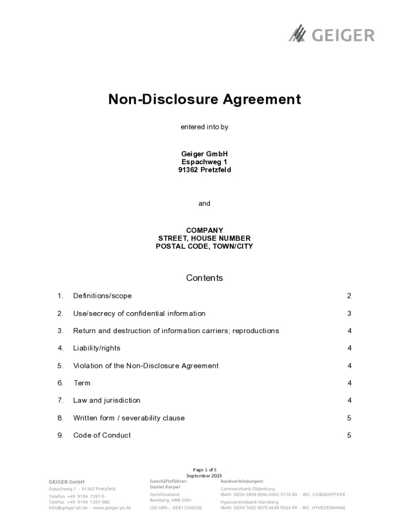Get the free Non-disclosure Agreement