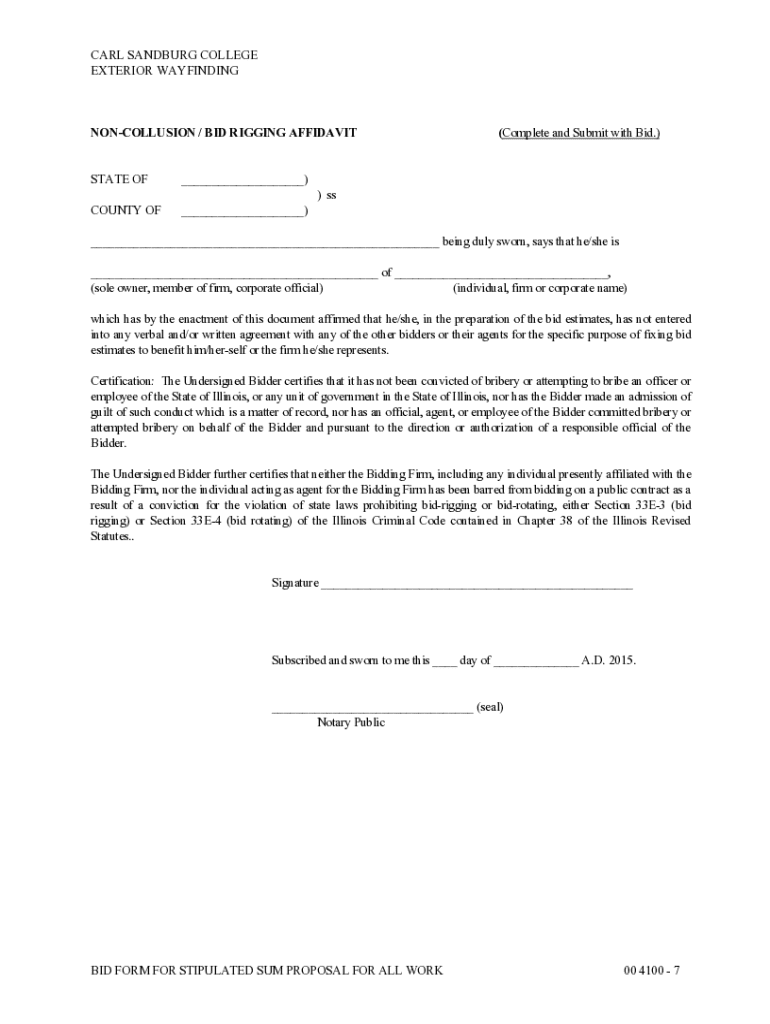 Overview of the non-collusion bid rigging affidavit form