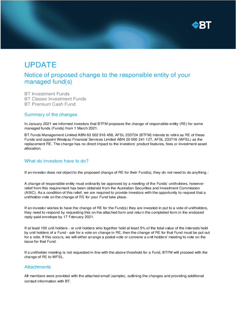 Get the free Notice of Proposed Change to the Responsible Entity of Your Managed Fund(s)