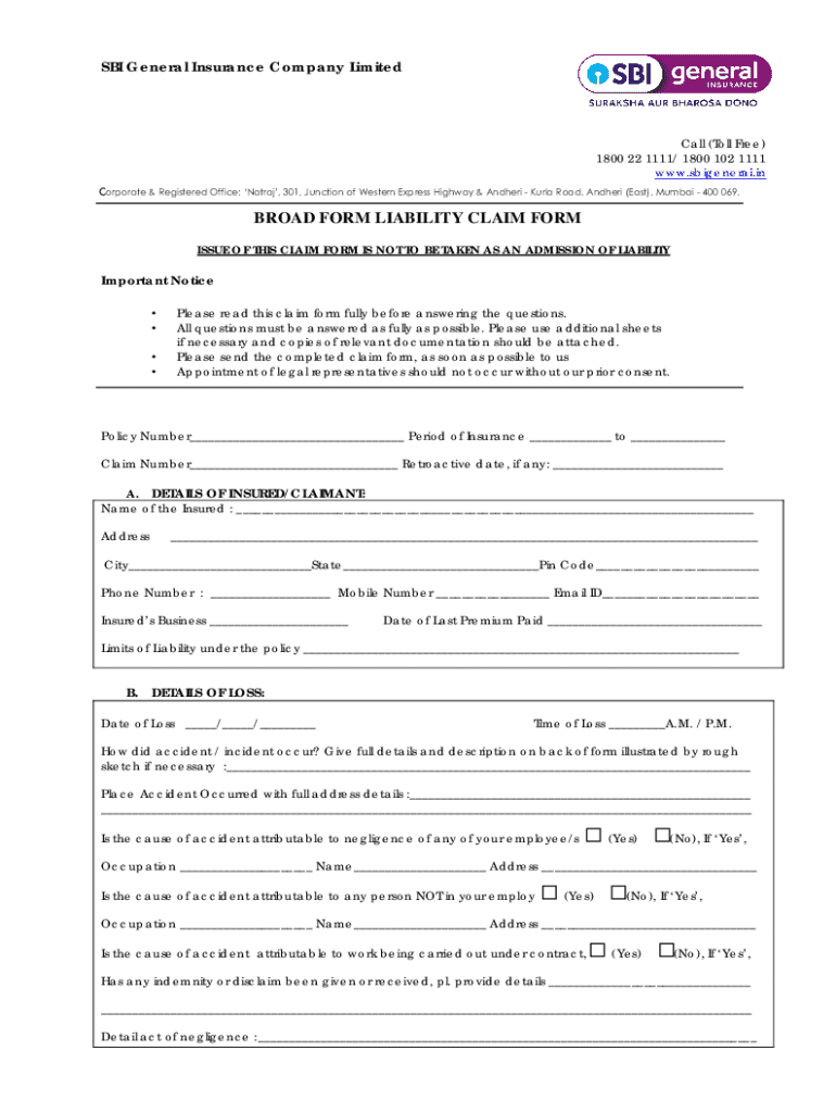 Get the free Broad Form Liability Claim Form