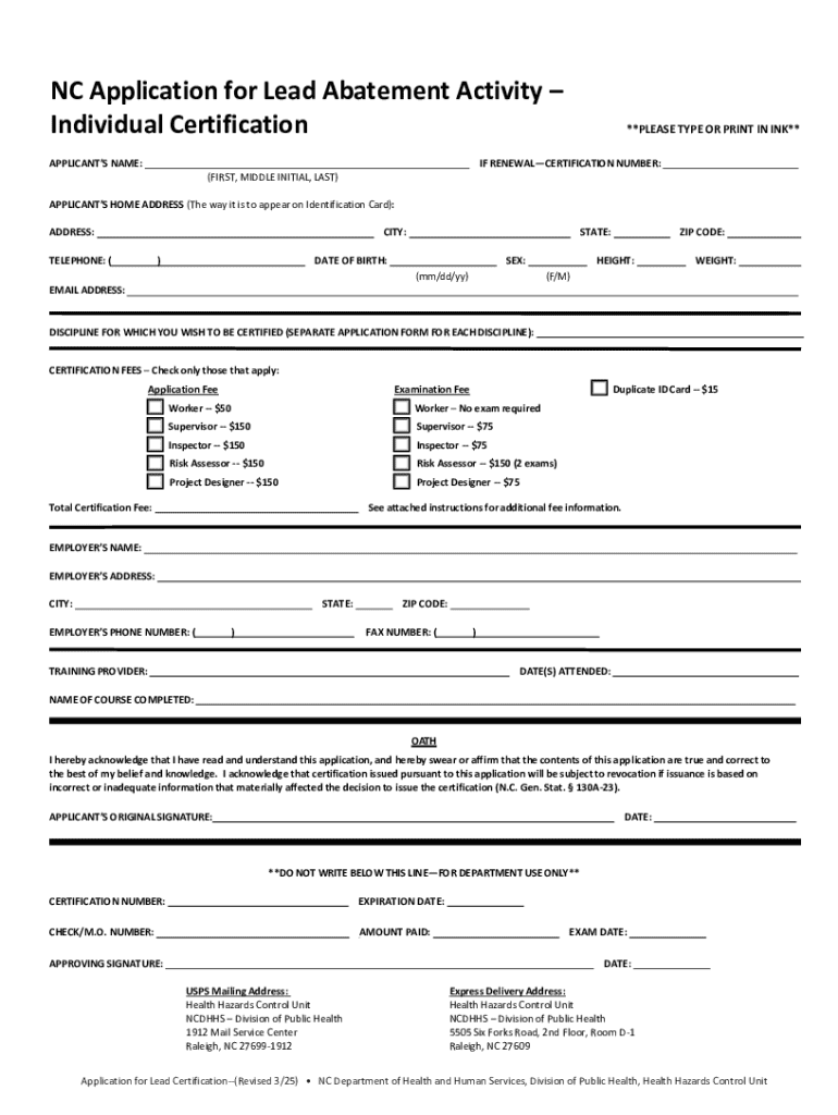 Get the free Nc Application for Lead Abatement Activity – Individual Certification