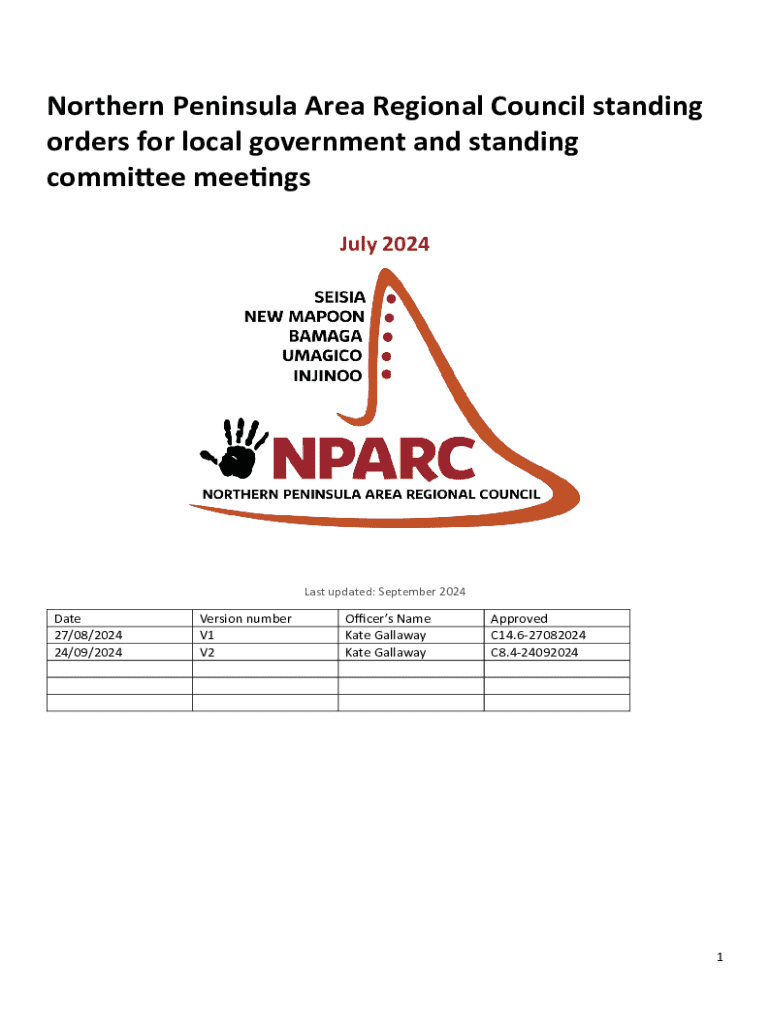 Get the free Northern Peninsula Area Regional Council Standing Orders
