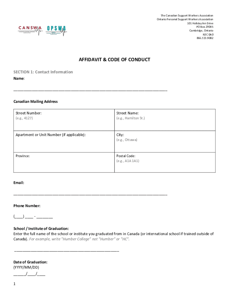 Get the free AFFIDAVIT & CODE OF CONDUCT