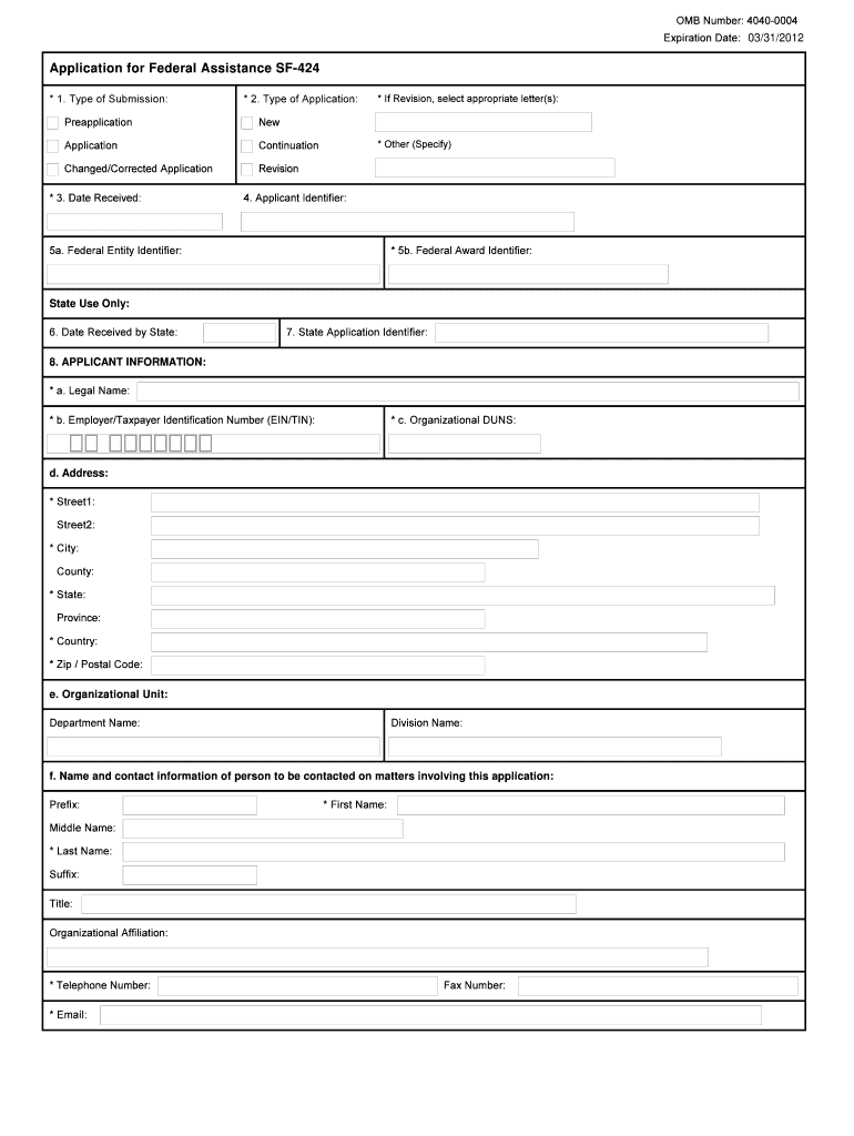 Get the free OMB Number: 40400004 Expiration Date: 01/31/2009 03/31/2012 Version 02 Application f...