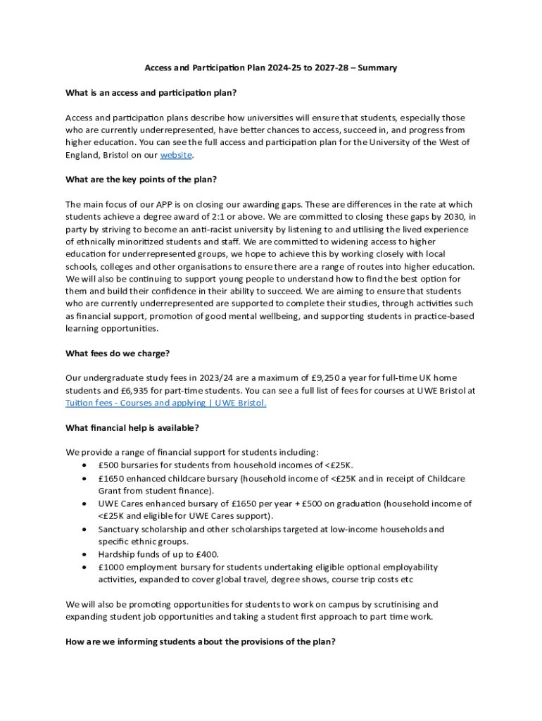 Get the free Access and Participation Plan 2024-25 to 2027-28 – Summary
