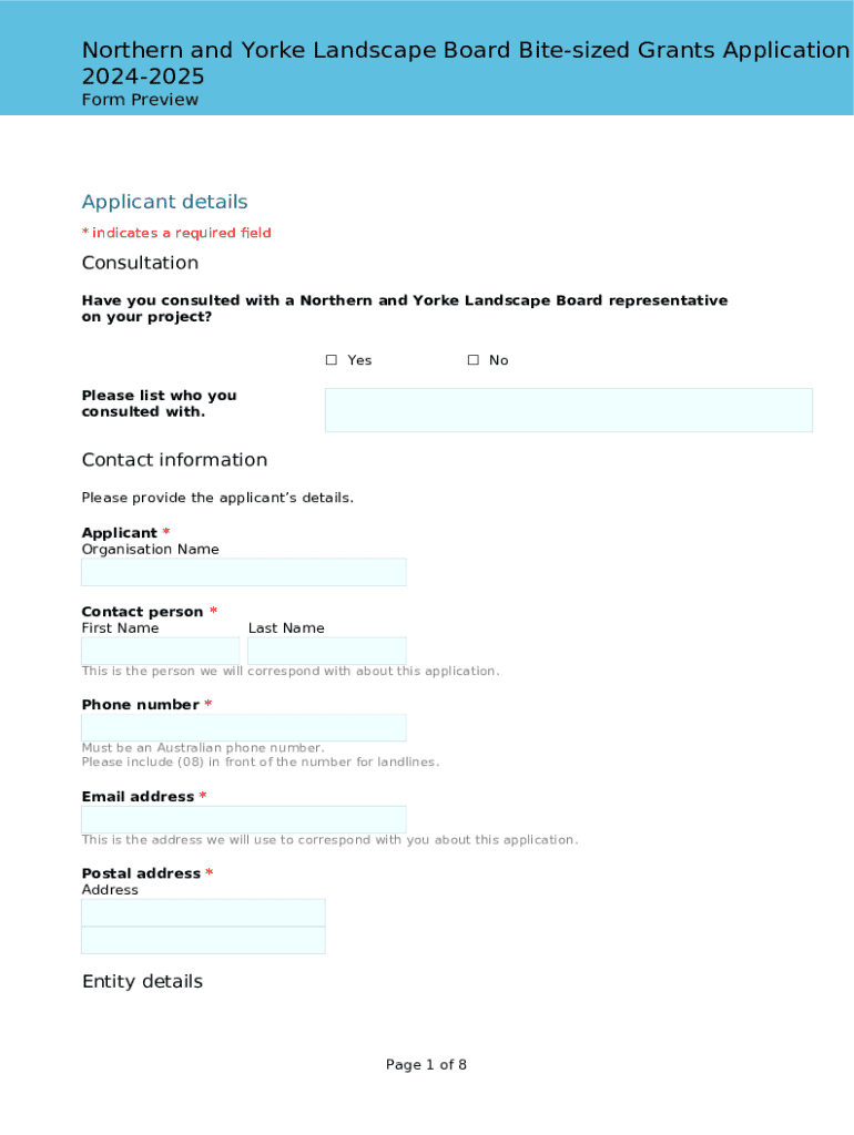 Get the free Northern and Yorke Landscape Board Bite-sized Grants Application