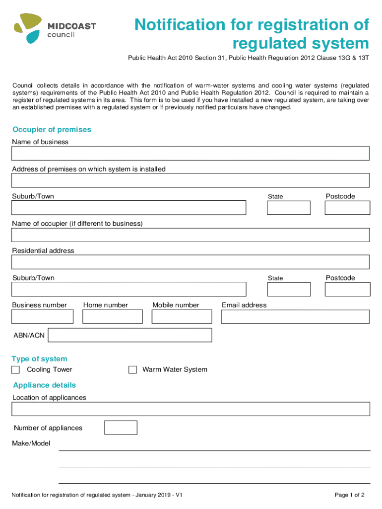 Get the free Notification for Registration of Regulated System
