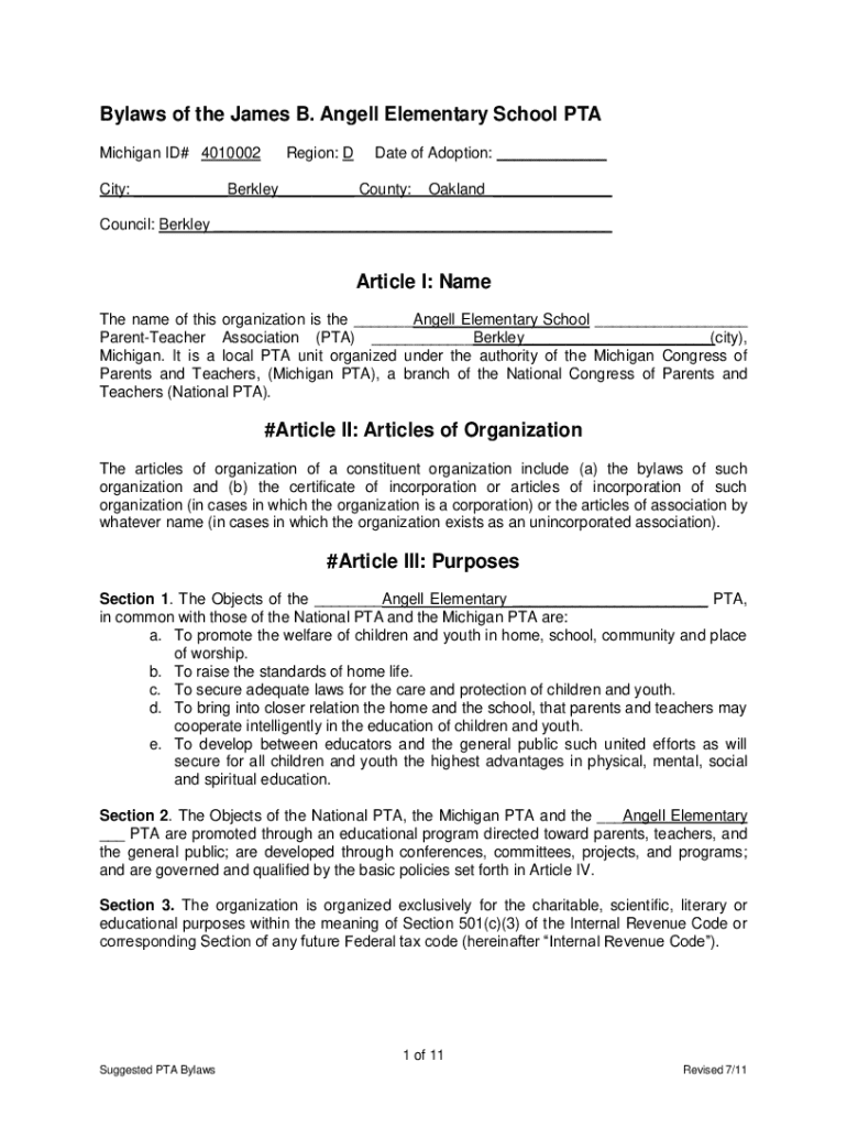 Get the free Bylaws of the James B. Angell Elementary School Pta