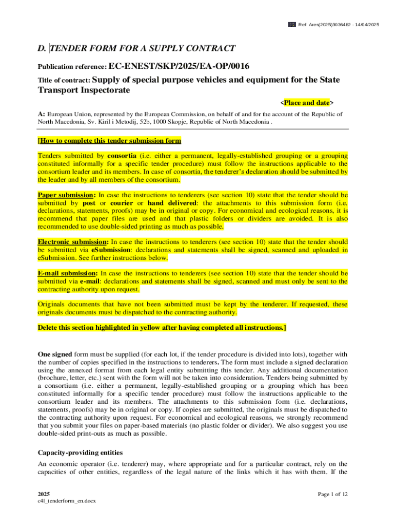 Get the free D. Tender Form for a Supply Contract - ec europa
