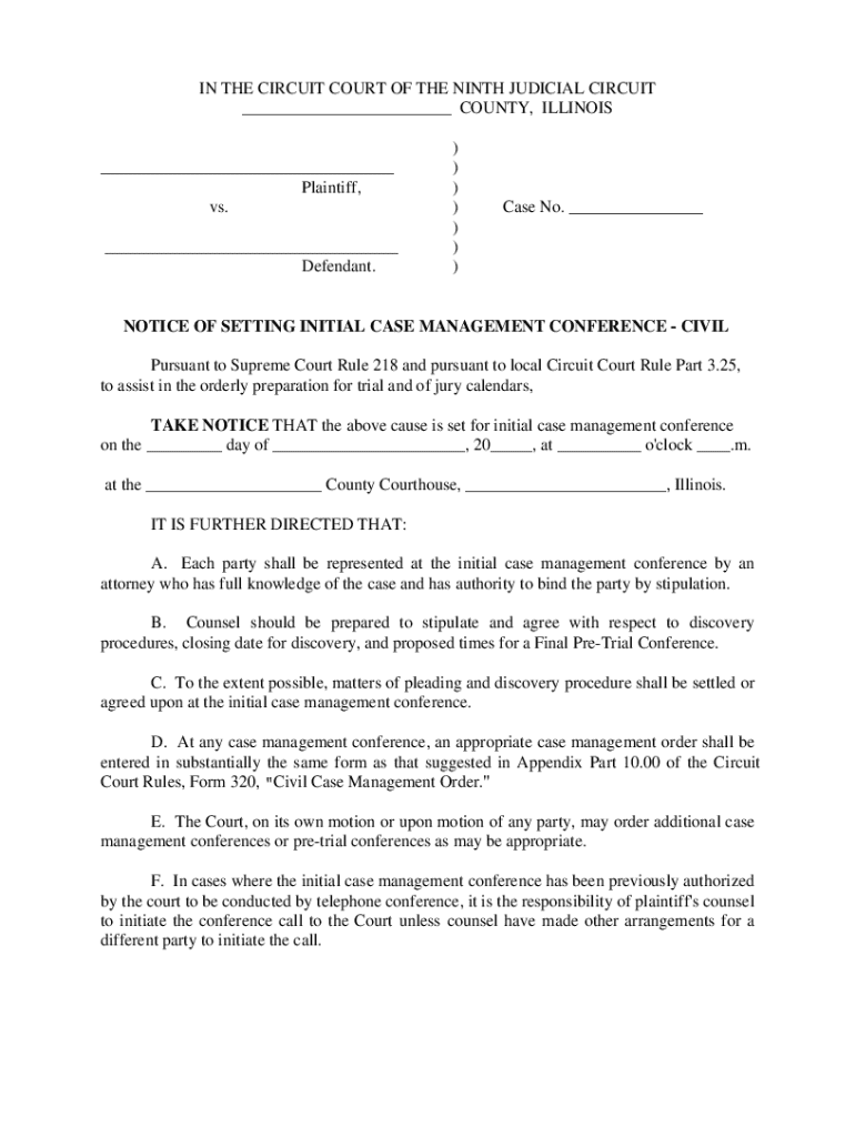 Get the free Notice of Setting Initial Case Management Conference - Civil