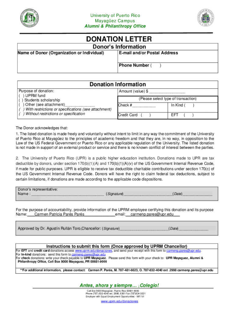 Get the free Donation Letter