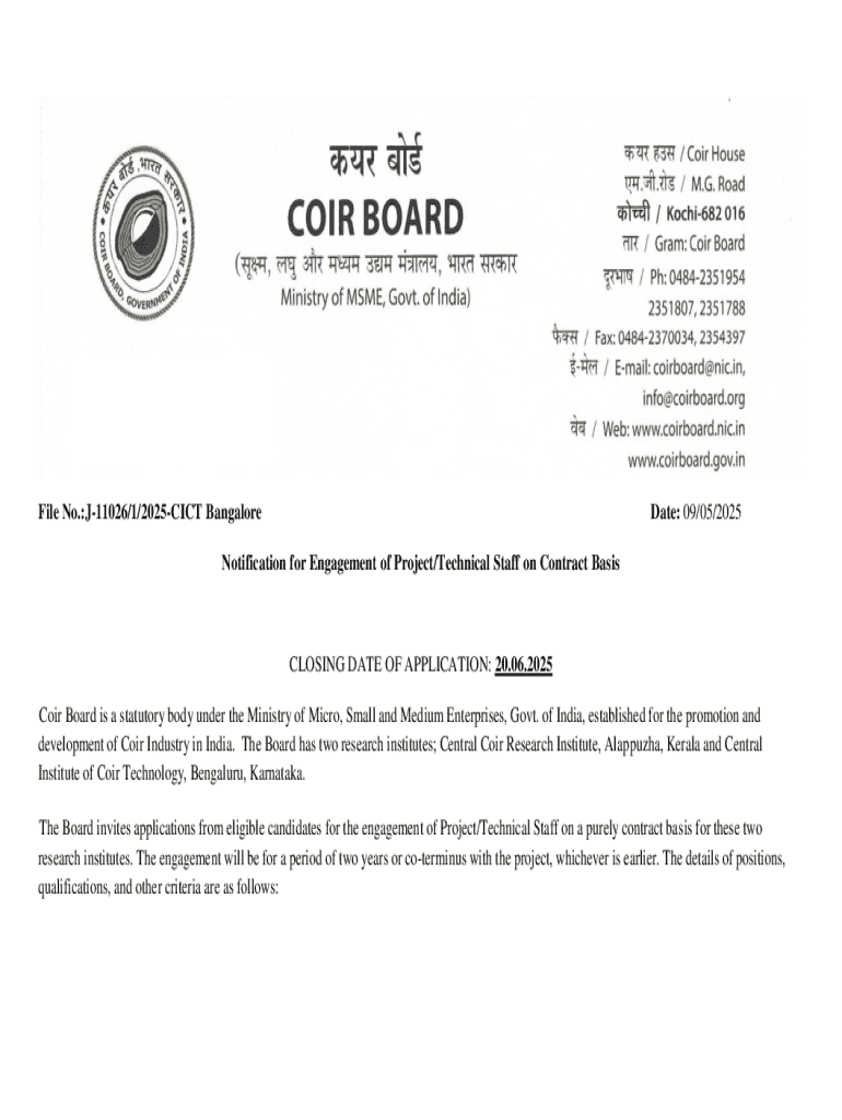 Get the free Apply for Project & Technical Staff Posts at CCRI & CICT - coirboard gov