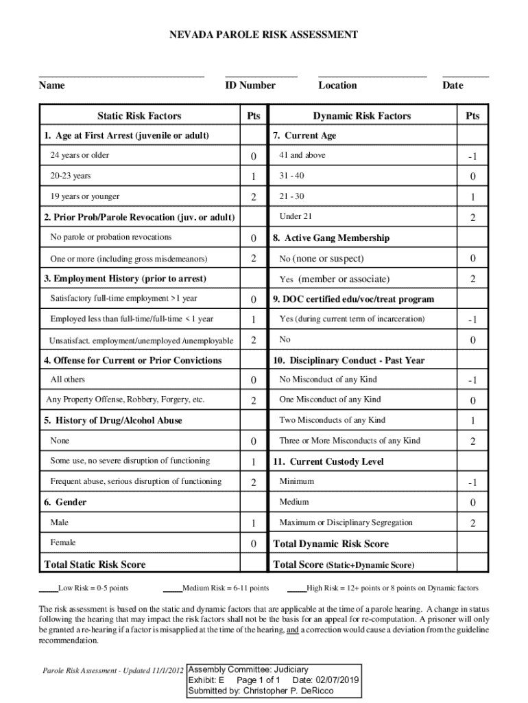 Nevada Parole Risk Assessment Form: A Comprehensive Guide
