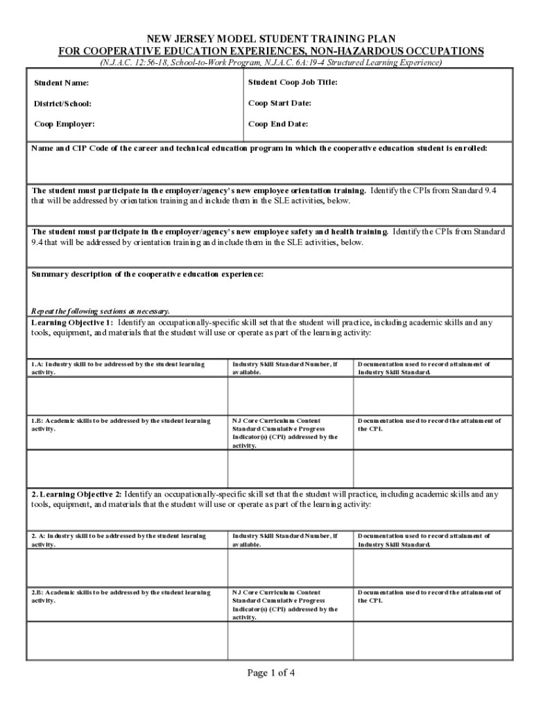 Get the free New Jersey Model Student Training Plan