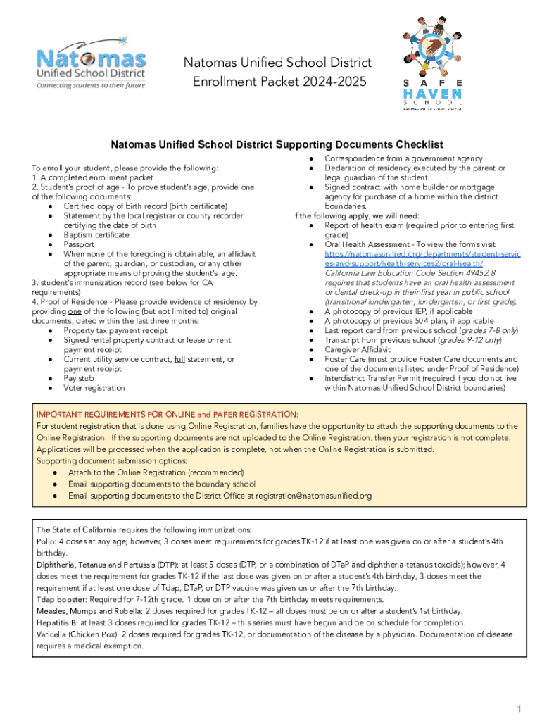 Get the free Natomas Unified School District Enrollment Packet 2024-2025