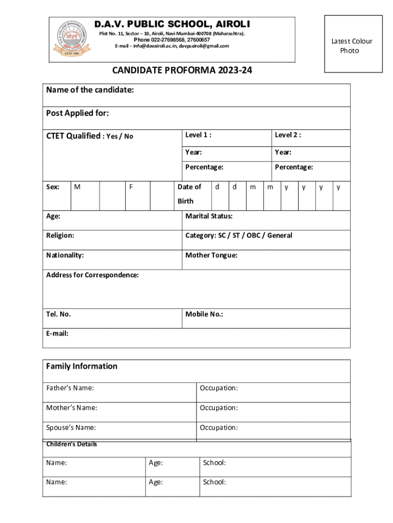 The DAV (Divya Asha Vikas) application form serves as a critical document for various educational and scholarship opportunities for individuals associated with the DAV institutions. The form's significance lies in its ability to verify eligibility for various programs and ensure that only qualified candidates proceed in the selection process.