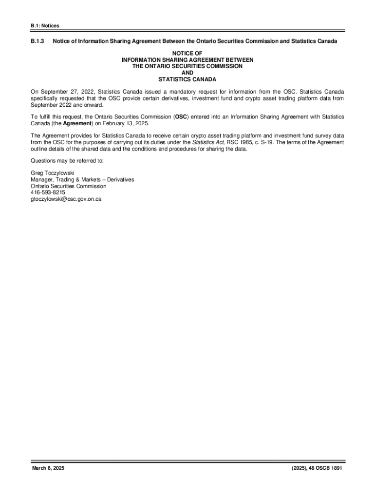 Get the free Notice of Information Sharing Agreement Between the Ontario Securities Commission an...