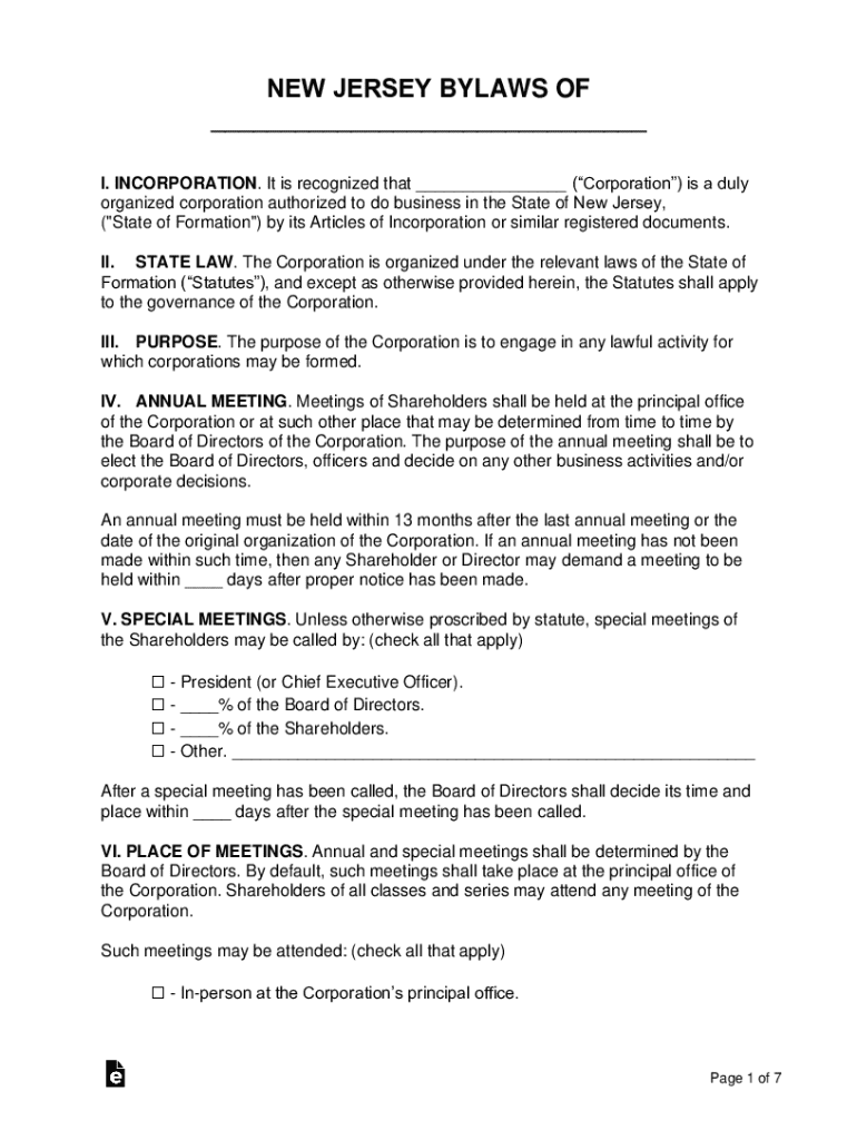 Get the free New Jersey Bylaws