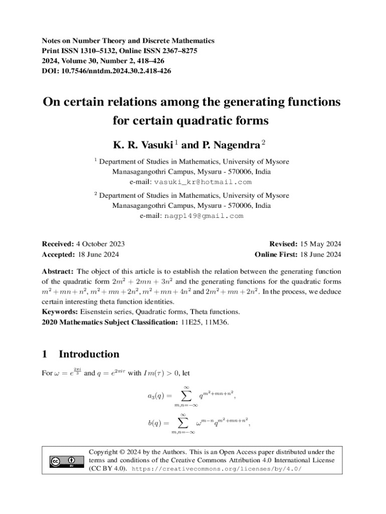 Get the free Notes on Number Theory and Discrete Mathematics