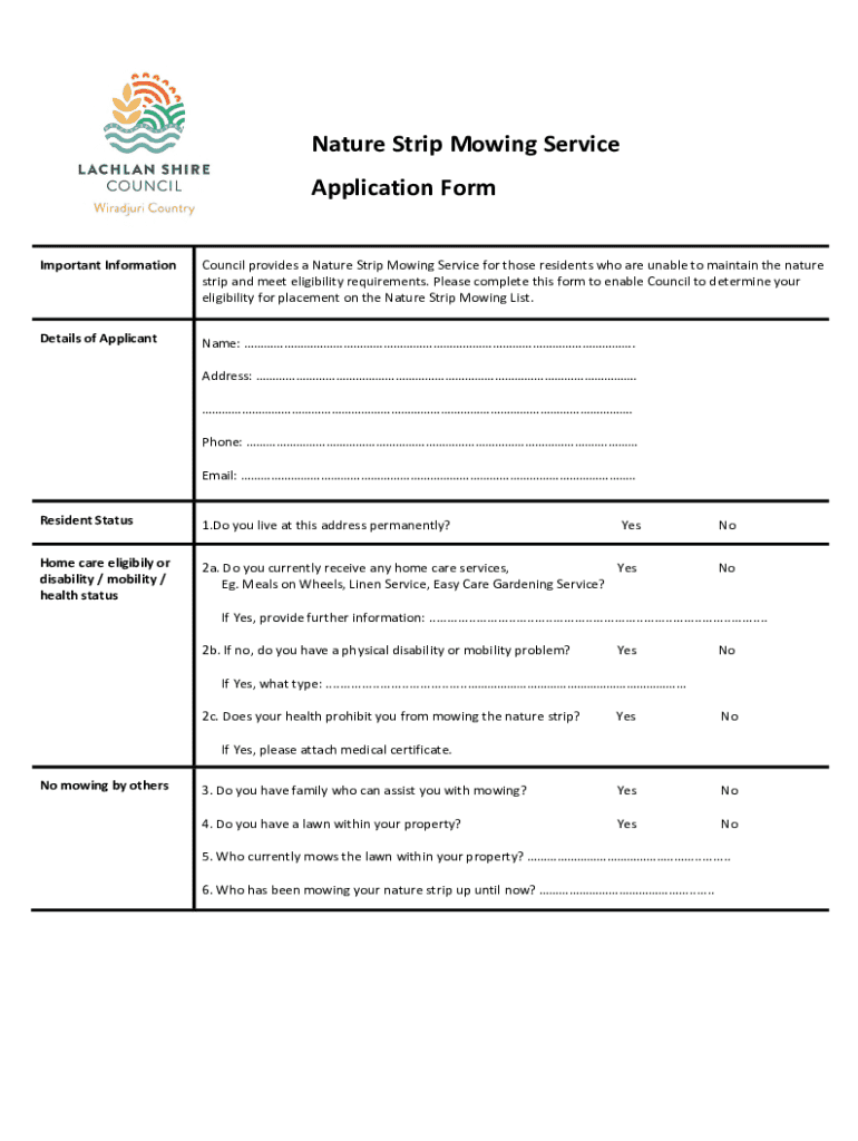 Get the free Nature Strip Mowing Service Application Form