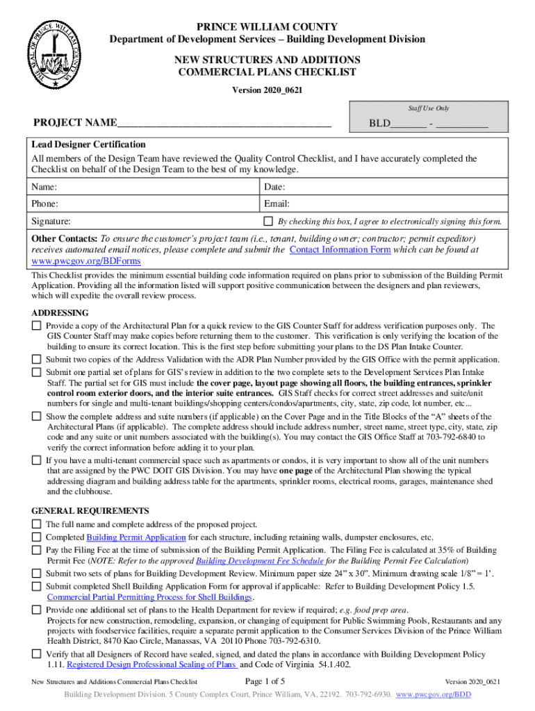 Get the free New Structures and Additions Commercial Plans Checklist